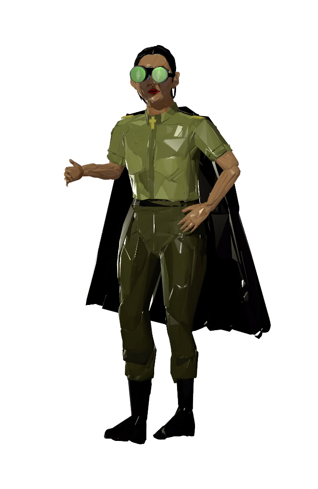 The first character you meet is The Jaguaress. The Jaguaress greets you inside the theatre. An Indigenous female director, she has the power to tell her own stories, and invites you into this world so you can get a taste of colonization's destructive trail.